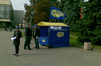 На прокламаціях, які поширювалися костенцівцями, карикатурно забражалася ймовірна парламентська коаліція з БЮТ, регіоналів та комуністів