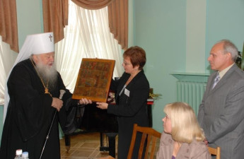 Владика Ніфонт подарував музею древню ікону святих Іуліти і Кирика та древні хрести з куполів храму Свято-Стрітенського Михнівського жіночого монастиря