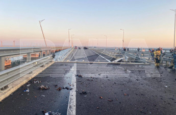 Так званий глава окупованого РФ Криму Сергій Аксьонов повідомив, що на Кримському мосту сталася надзвичайна подія, у зв'язку з чим рух там зупинено. Російські ТГ-канали повідомляють, що на мосту впав проліт.