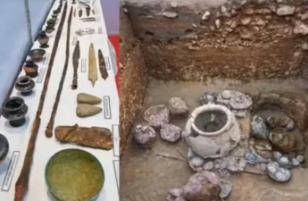 Науковці встановили, що списи датуються орієнтовно 2500-3000 роками до нашої ери. Один з них має довжину 2,5 метра, інший дещо коротший. Вони встановлені у вигляді хреста біля похоронної урни із золотими елементами.