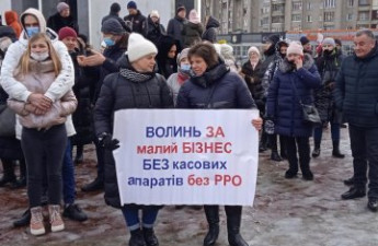 Під стінами Волинської облдержадміністрації підприємці влаштували акцію протесту. Вони вимагали внести зміни в закон про обов’язкове використання касових апаратів