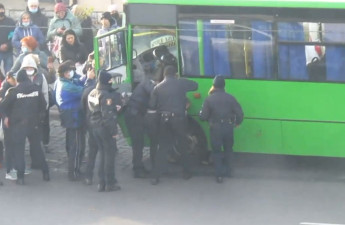 Під крики натовпу: у Луцьку скрутили водія автобуса, який конфліктував з поліцією через карантин. Відео