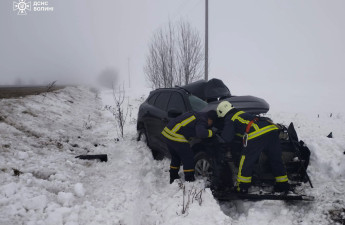 Волинські рятувальники витягували авто з кювету й буксирували швидку