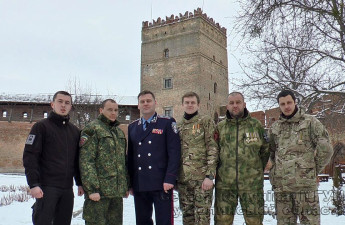 Волинські поліцейські та бійці добровольчих формувань «Азов», «ДУК» та «Айдар» привітали земляків з Днем Соборності України. Патріотичне віншування записали на подвір’ї Луцького замку.
