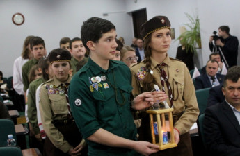 Волинські пластуни, які на кордоні з Республікою Польща отримали лампадку з благодатним вогнем з Вифлеєму, прийшли на сесію міської ради