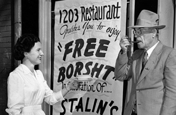 У 1953 році у Вашингтоні українські емігранти, власники "Ресторану 1203" роздавали безкоштовний борщ з нагоди смерті Сталіна. На ф...