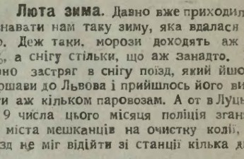 У луцькій пресі 1922 року вдалось натрапити на цікаву замітку про особливості зими в Луцьку майже 100 років тому. Так от, зима 1922 року ...