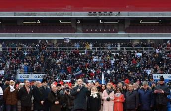Під час мітингу на підтримку чинного господаря Кремля Володимира Путіна, який братиме участь і у президентських виборах 2018 року, люди вигукували «Слава Україні». Захід відбувся напередодні на стадіоні «Лужники» у Москві