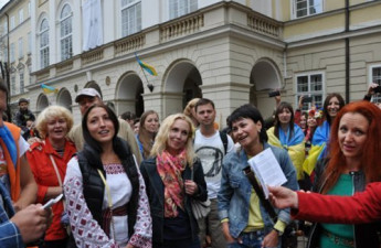Львів'яни та гості міста долучились до флешмобу "Де б ти не був, зупинись і заспівай гімн України" сьогодні, 24 серпня