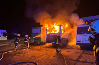 Уночі в Луцьку згорів автобус. Фото