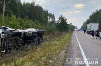Водійка автомобіля TOYOTA RAV4, рухаючись в напрямку м. Київ, під час обгону допустила зіткнення із зустрічним вантажним автомобілем Volvo з причепом.