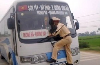 Майже милю проїхав вʼєтнамський місцевий офіцер дорожньої інспекції, тримаючись за двірники автобуса, щоб вручити водієві-порушнику штрафний талон