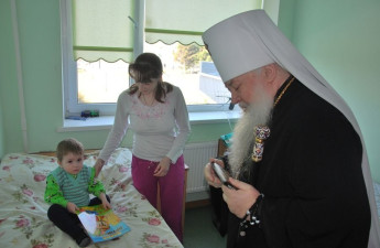 Митрополит Ніфонт до дня Пасхи відвідав дитячий онкогематологічний центр Волинської обласної дитячої клінічної лікарні. Роздав подарунки і керівнику, і пацієнтам
