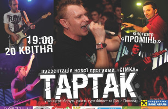 Гурт «Тартак» продовжує тур містами України – «15 років. Історія гурту у хітах, презентація нового альбому «Сімка». У рамках туру 20 квітня о 19.00 гурт виступить в луцькому кіноконцертному залі «Промінь»