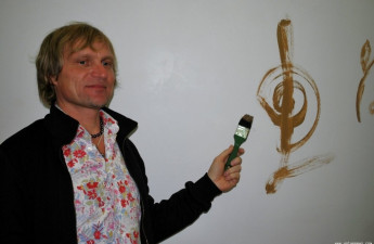Перший символ на чотирьохметровій писанці – скрипічний ключ – у Луцьку першим намалював лідер рок-гурту «Воплі Відоплясова» Олег Скрипка