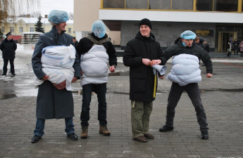 Гумористи із команди КВН збірної Волині «Б/з ПДВ» накричали на колишнього мера Луцька Богдана Шибу і змусили його підняти на руки одну із учасниць збірної