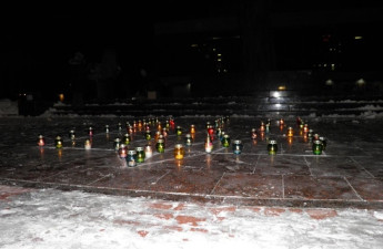 Несколько десятков человек вечером 29 января пришли на Театральную площадь в Луцке, чтобы почтить украинцев, погибших в бою под станцией Круты