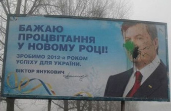 У Волинській області за заляпування біл-борду із новорічним привітанням Віктора Януковича зловили 73-річного дідуся