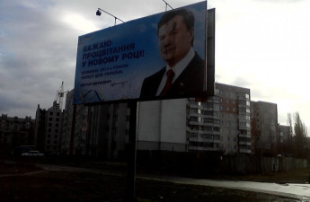 Билборды с приветствием Президента Украины Виктора Януковича в Луцке забросали черной краской. Черные пятна на лице главы государства в областном центре появились 13 января