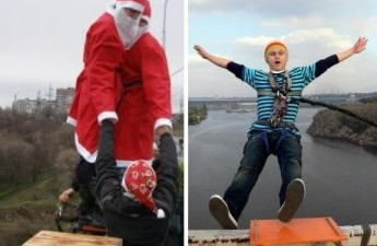 Півсотні Дідів Морозів стрибали з 40-метрового мосту