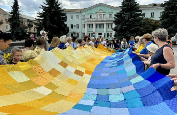 У Нововолинську розгорнули найбільший вʼязаний прапор України