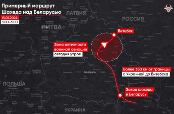Один із дронів Shahed, який вночі мав атакувати Україну, пролетів близько 350 км над Білоруссю. Він увійшов у Вітебську область, а далі зник – що з ним сталося, невідомо.