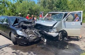 Транспортні засоби отримали значні механічні пошкодження. Бус від удару злетів у кювет.