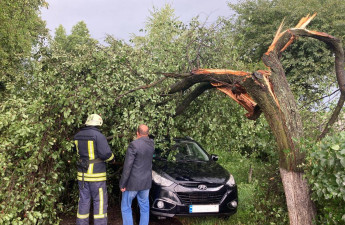 Сьогодні на Волині пройшов дощ із грозами та сильним вітром. Рятувальникам довелося вивільняти з-під зламаного дерева легковик та розчищати автодорогу.