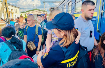 На пероні дітей та дорослих зустріли рятувальники, волонтери, медики, поліцейські та посадовці органів влади. Рятувальники допомогли прибулим перенести речі, а психологи ДСНС поспілкувались з ними та надали емоційну підтримку.