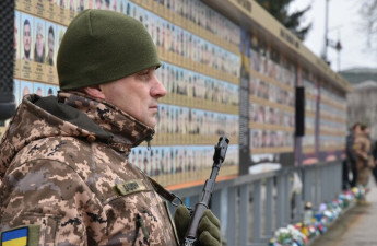 Сьогодні на Театральному майдані Луцька відбулась громадська панахида, аби вшанувати тих, хто взяв до рук зброю, щоб дати відсіч російському окупанту.