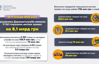 За 11 місяців митники виявили порушень митних правил на 8,1 млрд грн