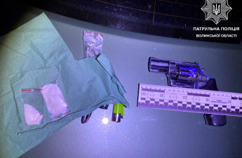 Під час спілкування з водієм той почав помітно нервувати. Було прийнято рішення провести поверхневу перевірку, під час якої у кишені чоловіка патрульні виявили два зіп-пакети з білою порошкоподібною речовиною, що була схожа на наркотичну. Інспектори провели поверхневу перевірку також щодо пасажира авто. У його сумці було виявлено предмет, схожий на револьвер.