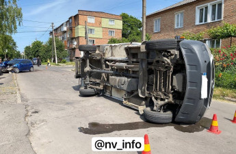 За словами очевидців, синій легковик їхав головною вулицею, а вантажівка його не пропустила. У результаті зіткнення вантажівка Mercedes перекинулася.