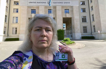 Разом з іншими українцями жінка взяла участь у маніфестації з визволення полонених захисників «Азову» біля Штаб-квартири ООН в Женеві.