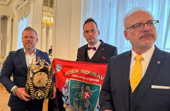 Прапор, сувеніри та подяки від воїнів волинської бригади латвійські волонтери Артурс Крістлібс та Айгарс Лосс передали главі Латвії у Ризькому замку, де президент Латвійської Республіки вручив їм державні нагороди за постійну підтримку України.