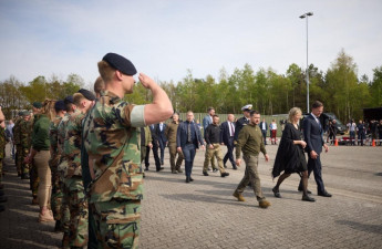 Президент Володимир Зеленський під час офіційного візиту до Королівства Нідерланди зустрівся з українськими військовими, які перебувають там на навчанні, та ознайомився зі зразками озброєння, що його передають Україні.