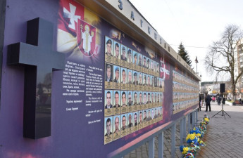 На Театральному майдані обласного центру представники міської та обласної влади, військовослужбовці й громадськість поклали квіти до фотостенду «Герої Небесної Сотні – Загинули за єдність України».