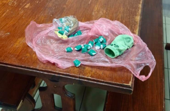 Під час поверхневого огляду в сумці одного з чоловіків було виявлено розріз в кармані, а там знаходилася шкарпетка, в середині якої – згортки із невідомою речовиною, ззовні схожою на наркотики.