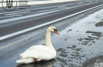 На Волині врятували пораненого лебедя, який лежав на узбіччі траси