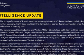 Від початку російського вторгнення в Україні мінімум шість російських командувачів були звільнені та 10 російських генералів загинули.