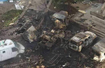 В окупованому Енергодарі згоріли три одиниці військової техніки РФ перед готелем «ВП ЗАЕС», де живуть росіяни.