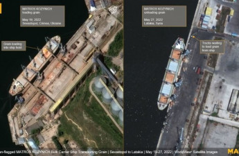 Американська компанія Maxar показала фото, на яких судна під російським прапором перевозили зерно, зібране в Україні минулого сезону, і доставляли його до Сирії.