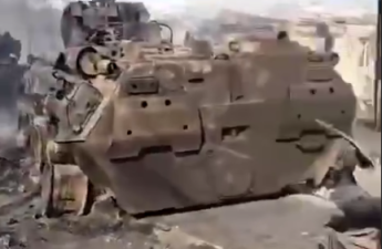 У Бучі ліквідували колону техніки російської армії з позначкою V. Відео