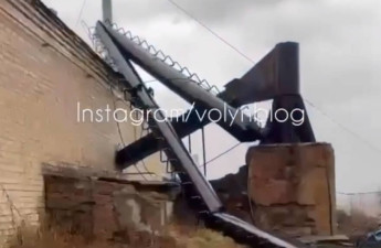 Неподалік Луцька сильний вітер зігнув трубу шкільної котельні. Відео