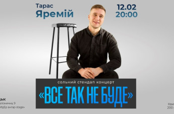 12 лютого о 20:00 в «ГаРмИдЕр ангар-stage» у рамках туру «Все так не буде» відбудеться сольний стендап концерт Тараса Яремія.