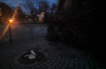 У місті Калуш Івано-Франківської області сильний вітер повалив новорічну ялинку. Про це у Facebook повідомив міський голова Андрій Найда