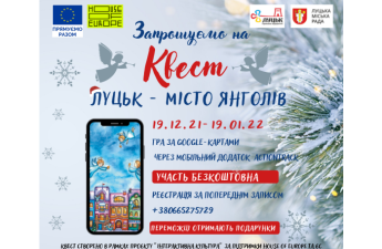 У Луцьку запрошують взяти участь у квесті «Луцьк – місто Янголів». Квест проводиться протягом місяця – з 19 грудня 2021 року по 19 січня 2022 року.
