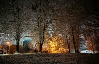 Нічна краса засніженого Луцька. Фото