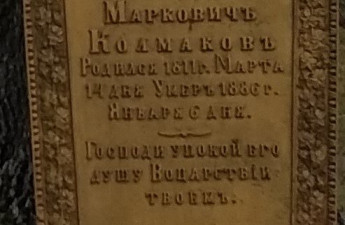 Надмогильну плиту Олександра Колмакова волинський археолог, кандидат історичних наук Сергій Панишко знайшов біля Михайлівської церкви в селі Смолява на Горохівщині. Про цього представника роду Колмакових відомо лише те, що з 1854 року він був канцелярським чиновником Комітету правління Російської імператорської академії наук.