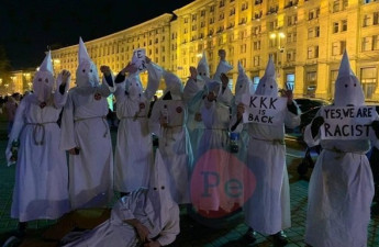У Києві ввечері неділі, 31 жовтня, в день Хелловіну група людей гуляла центром міста в костюмах Ку-клукс-клану.